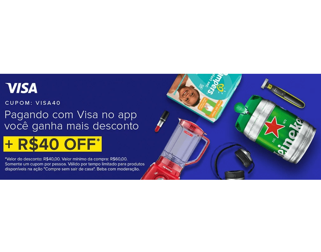 Um cupom por usuário. Desconto máximo de R$40,00.