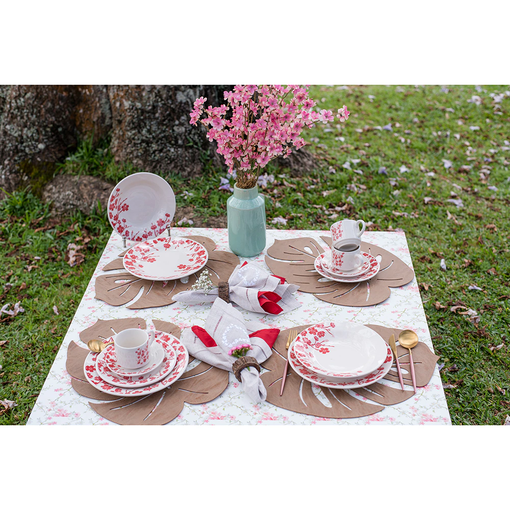 Aparelho de Jantar, Chá e Sobremesa 20 Peças Biona Jardim Oriental em Cerâmica – Branco/Vermelho