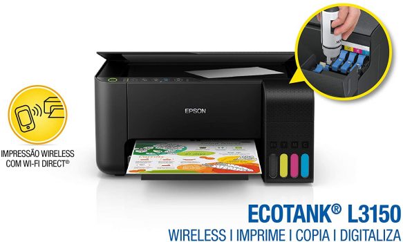 Multifuncional Epson EcoTank L3150 – Tanque de Tinta Colorida, Wi-Fi Direct, USB, Bivolt