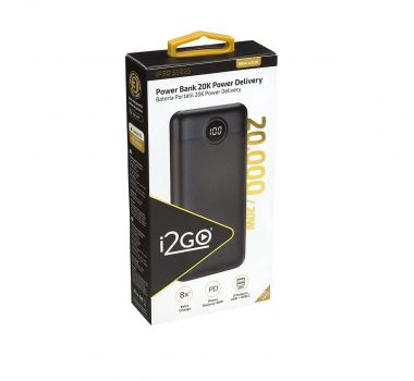 Carregador Portátil (Power Bank) Ultra Rápido 20000mAh Power Delivery 20W 2 Saídas USB + 1 Saída/Entrada USB-C Preto I2GO – I2GO PRO