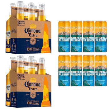 Kit Cerveja Corona Extra Long Neck 330ml – 12 Unidades + Cerveja Patagonia Bohemian Pilsener Lata Sleek 350ml – 8 Unidades