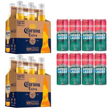 Kit Cerveja Corona Extra Long Neck 330ml – 12 Unidades + Cerveja Patagonia Amber Lager Lata Sleek 350ml – 8 Unidades