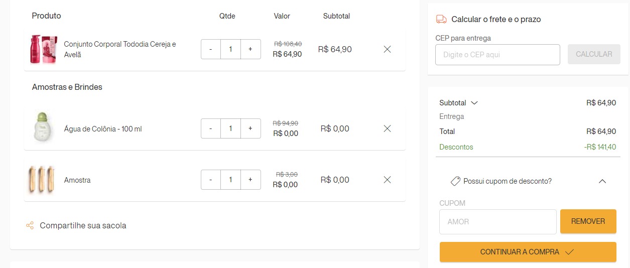 2 – Adicione o cupom AMOR