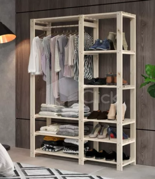 Estante C/ 8 Prateleiras E Cabideiro Madeira Maciça P/ Loja