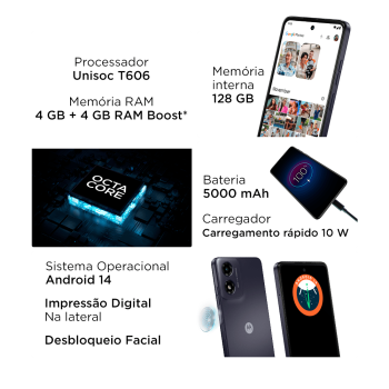 Smartphone Motorolo Moto G04 8GB RAM Boost* 128GB ROM Android Bateria 5000mAh