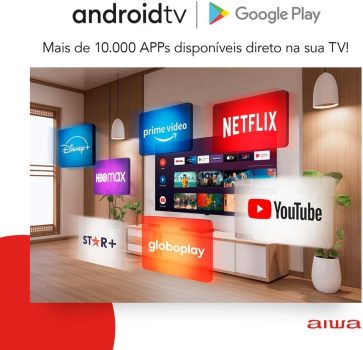 Smart TV Aiwa 32”, Android, HD, Borda Ultrafina, HDR10, Dolby Áudio – AWS-TV-32-BL-02-A