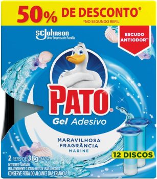 Pato Desodorizador Gel Adesivo 2 Refis Marine, Limpeza Banheiro, Vaso Sanitário Limpo e Perfumado, 12 Discos