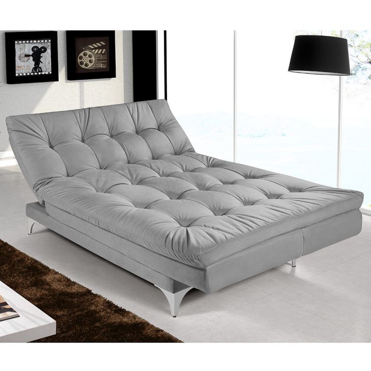 Sofá-Cama e Chaise Casal Versátil Veludo Liso Cinza
