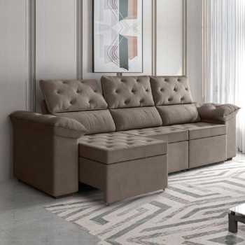 🌟 Sofá Retrátil 3 Lugares 2,10m York Suede Marrom – Marrom 🌟