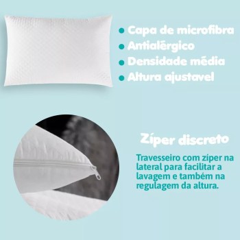 🌟 Kit 02 Travesseiros Fibra Antialergic Regulagem Altura 70×50 🌟