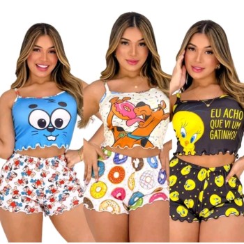 Kit 3 pijamas baby dool sortidos SUEDE personagem