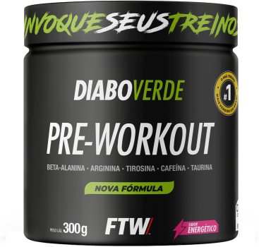 🔥 FTW Pré-Treino Diabo Verde – Energia Extrema, Força e Foco – Potência Hardcore com Cafeína, Beta-Alanina – Para Treinos Intensos – sabor: Energético – Pote 300g