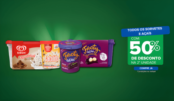 🔥 Todos os Sorvetes & Açaís com 50% de desconto na 2º Unidade