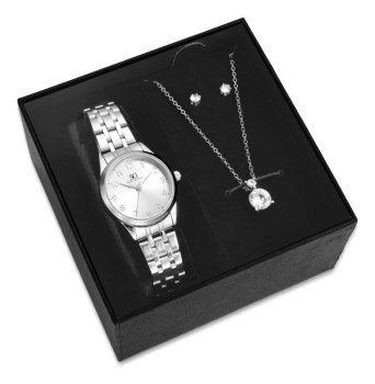 Kit Relógio Colar Brincos Prata Feminino Saint Germain 28 Mm Prateado Prateado Prateado