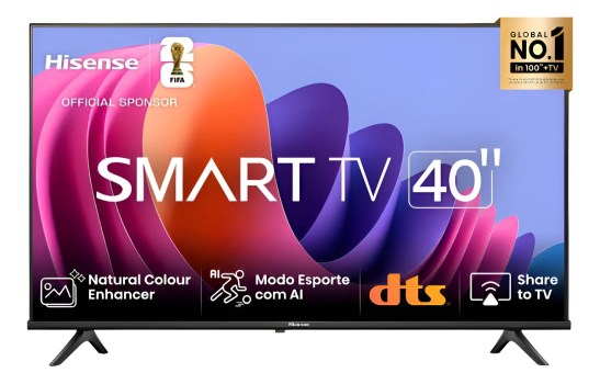 🔥 Hisense Smart TV FHD 40″ Polegadas 40A4N com DTS Virtual X Game e Sports Mode Controle por Voz Share to TV e Compatível com Alexa