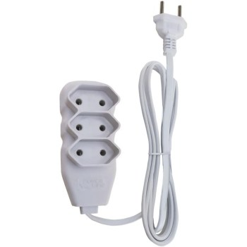 🔥 Force Line – Extensão Slim, 3 Tomadas, Bipolar, Bivolt, 1 Metro, Branco