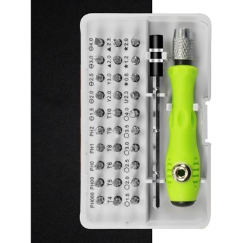 Conjunto de chaves de fenda de precisão profissional 32 em 1, kit de ferramentas de reparo magnético com alça verde, brocas diversas para eletrônicos, óculos e conserto de pequenos eletrodomésticos