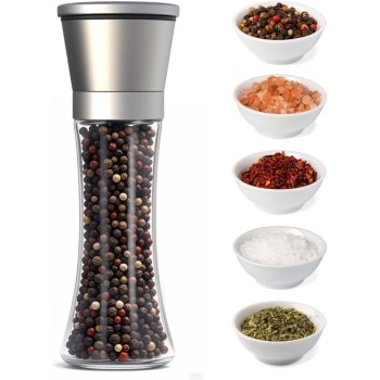 Conjunto de 1 moedor de sal e pimenta – moedores manuais de vidro de aço inoxidável, grossura ajustável recarregável