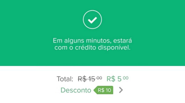 O desconto é de até R$ 10,00 e só vale para uma única transação. A recarga pode ser feita de com dinheiro em conta ou cartão de crédito sem taxas extras.