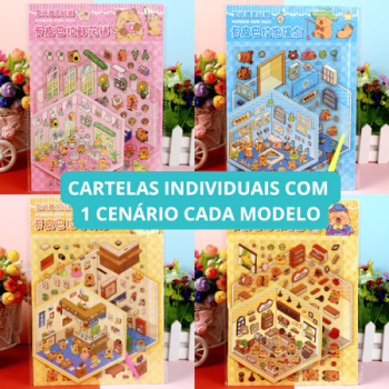 🔥 Caderno Interativo Com Adesivos Livro Capivara 3d 8 Cenários + Pinça para Montar Seu Mini Mundo