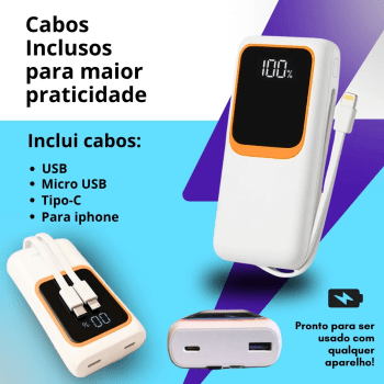 🔥 Carregador Portátil 20000 Turbo 22.5w Power Bank Premium Universal Rápido Para Samsung iPhone Xiaomi Motorola Celular Smartwatch Tablet Casenn Branco