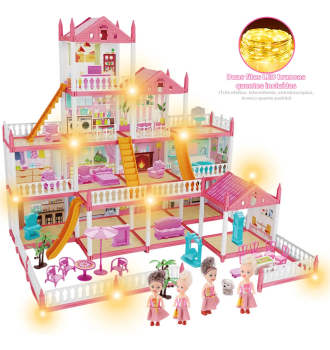 🔥 Casinha De Boneca Castelo Da Princesa 283 Pcs Rosa Com Quatro Bonecas