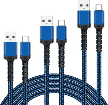 Cabo USB tipo C (pacote com 3, 3/6/10 pés) USB-A para USB-C Cabo de carregamento rápido tipo C Cabo de carregamento trançado de nylon para Samsung Galaxy S24 S23 S22 S21S20 S10, Note 20 10, para iPhone
