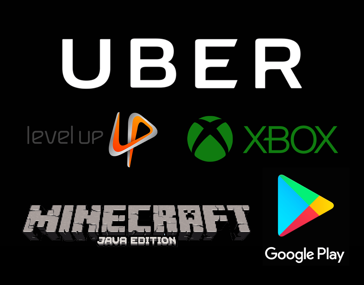 ➡ Uber, Xbox, Level UP, Google Play, Minecraft