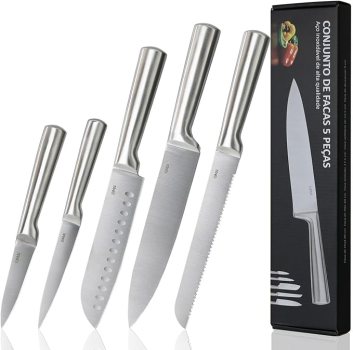 LUMAI Original Conjunto de 5 Facas Grandes de Cozinha Zurich Robusto em Aço Inoxidável 3CR13 com Lâminas Inteiriças – Forja Prolongada para Robustez, Anti ferrugem, Ultra Afiadas e Precisão Suíça