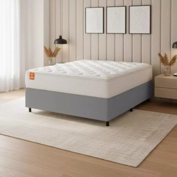 Cama Box Colchão Casal Molas Ensacadas Real 138x188x65cm Branco / Cinza Inducol – Suporta até 130kg por Pessoa