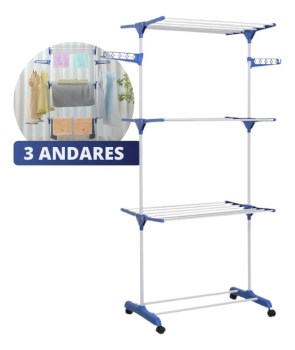 🔥 Super Varal De Chão Aço 3 Andares Dobrável Retrátil Resistente Multiuso Grande Super Pratico Para Roupas Com 4 Rodas Vertical Compacto Fácil Montagem Alta Capacidade Secagem Rápida Shokki