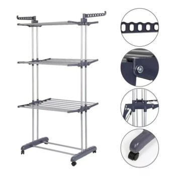 🔥 Varal De Chão De Roupas 3 Andares Dobrável Grande 4 Rodas