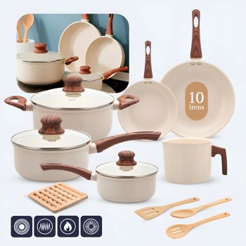 🔥 Jogo De Panelas Induçao Antiaderente Cerâmica 10 Peças Ppg Pfoa Free Vanila