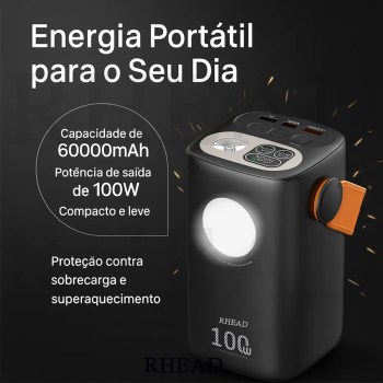 🔥 Power Bank 60.000mah 100w Para – Starlink Mini Ultra Rápido Carregador Portátil E Notebooks celulares computadores viagens trabalho home office proteções contra sobrecarga e curto-circuito Marca RHEAD