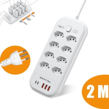 🔥 Inova Filtro de Linha 8 Tomadas 2 USB-C 3 USB 2m Bivolt 2500W