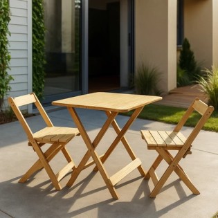 🔥 Jogo De Mesa Dobrável 70×70 C/ 2 Cadeiras Madeira Maciça