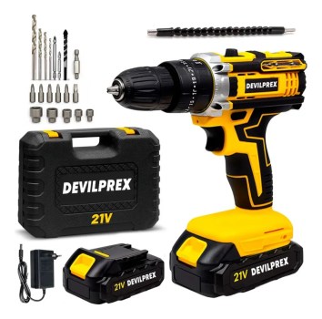 🔥 Parafusadeira Furadeira Impacto Sem Fio 21v 2 Bateria 2.000mah Bivolt Kit Chave Completo Com Maleta Brocas Chaves Devilprex Dpx-6781