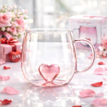 🔥 Caneca Coração 400ml Vidro Borossilicato Premium – Presente Romântico Dia das Mães / Namorados