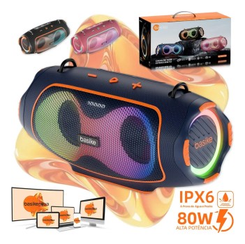 🔥 Basike Caixa De Som Bluetooth Portátil Boombox 80w 8000mah Hifi Xtreme 3 Com Rgb Tws Ipx6 Prova Dágua Grave Potente Bass Boost Para Karaoke Profissional