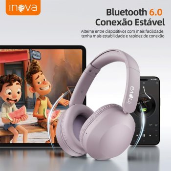 🔥 INAVA Headphone Bluethooth, 25h, Áudio Hi-Res, Headset com Microfone, ENC, Fone de Ouvido Bluetooth, Suitable for Travel, Home, and Office Use (Roxo)
